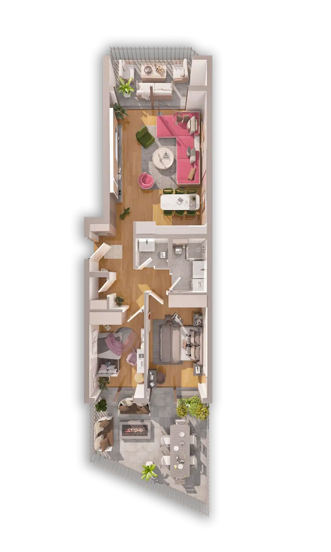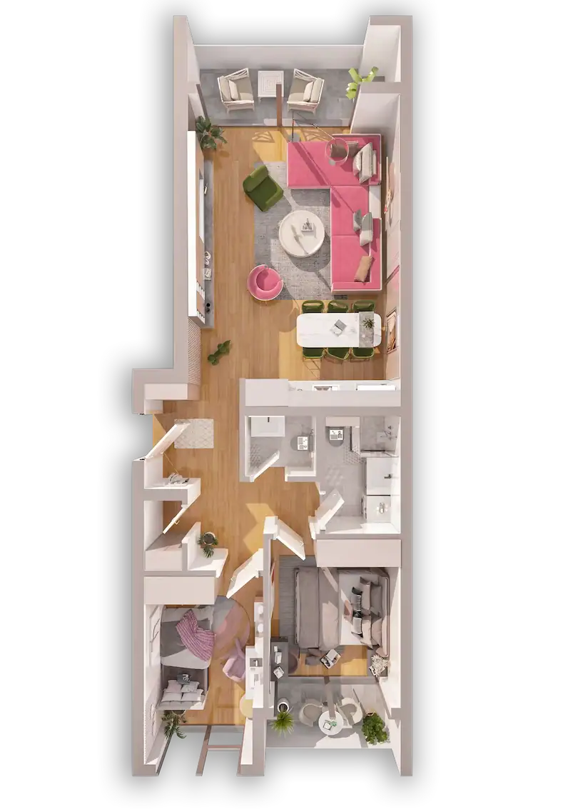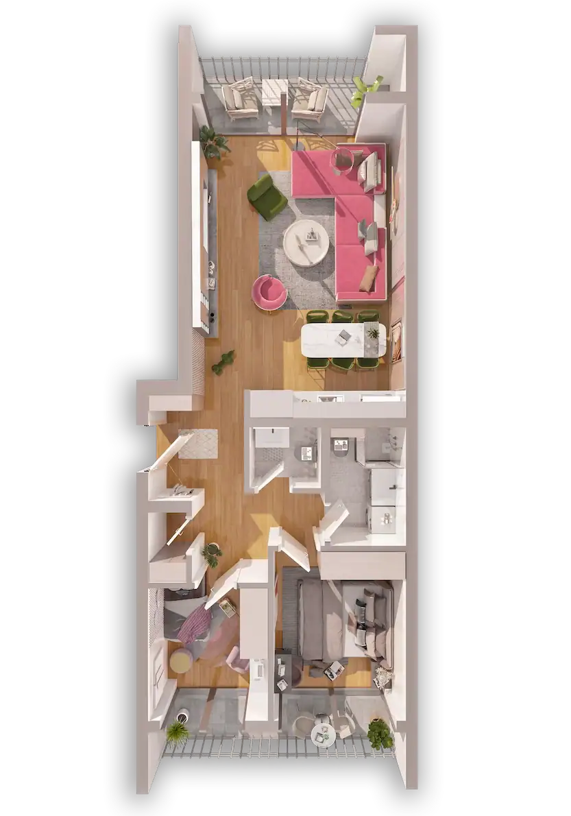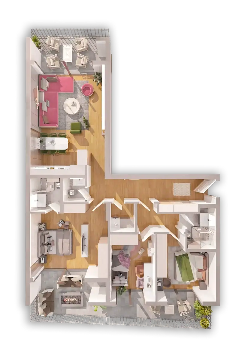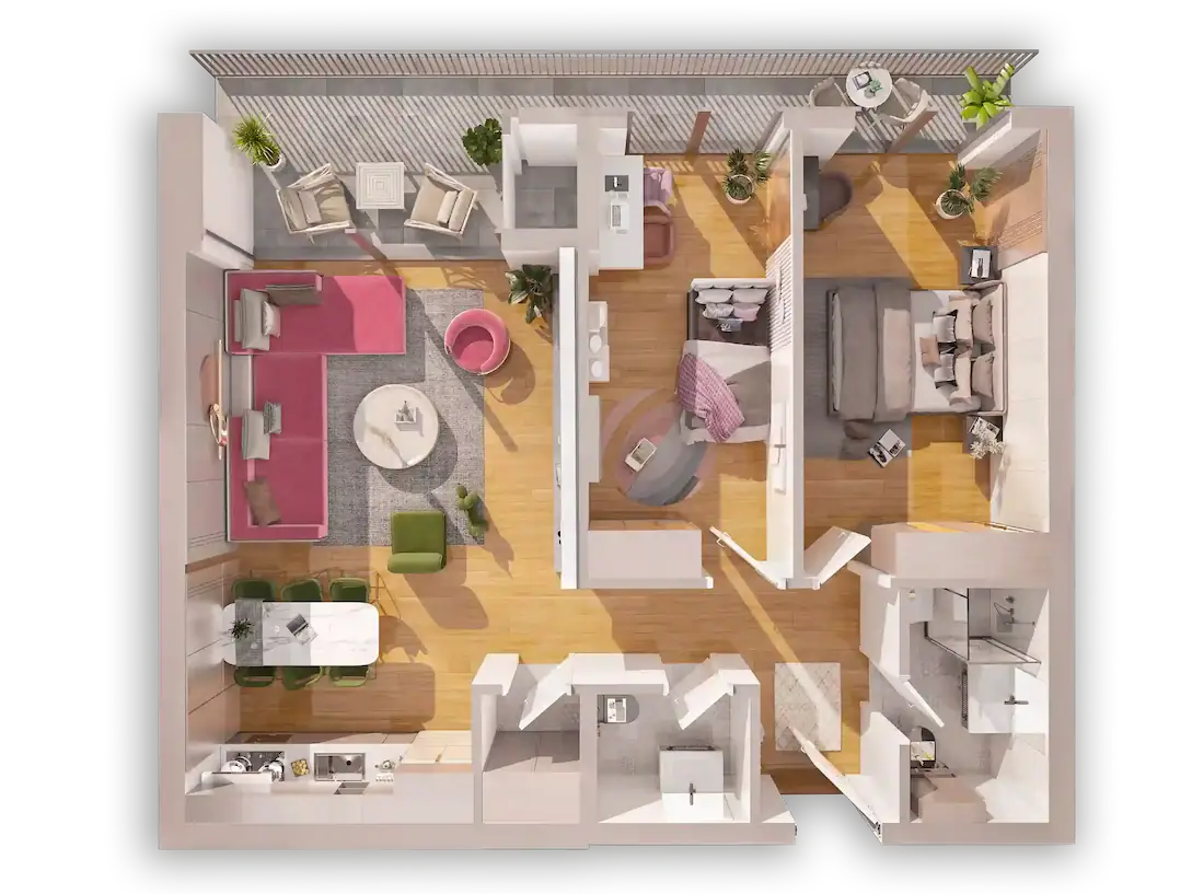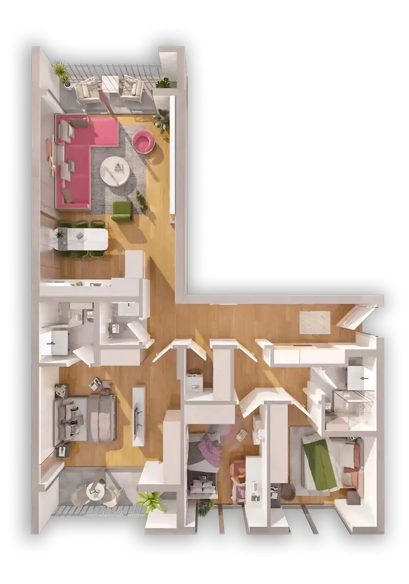 Kompleksi ynë përmban 23 tipe të banesave të formave të ndryshme, me mundësi zgjedhje për çdo person. Banesat fillojnë nga 6O m2 deri tek ato luksoze me 144 m2.